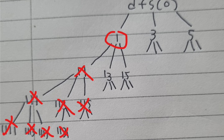 즉 이 그림으로 본다면 111은 1111 , 1113 , 1115를 뻗어 나가서 리턴을 만나고