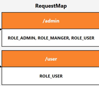 Map 형태에서 : Key : (url 경로 : /user/**) : Value : (ADMIN) 경로로