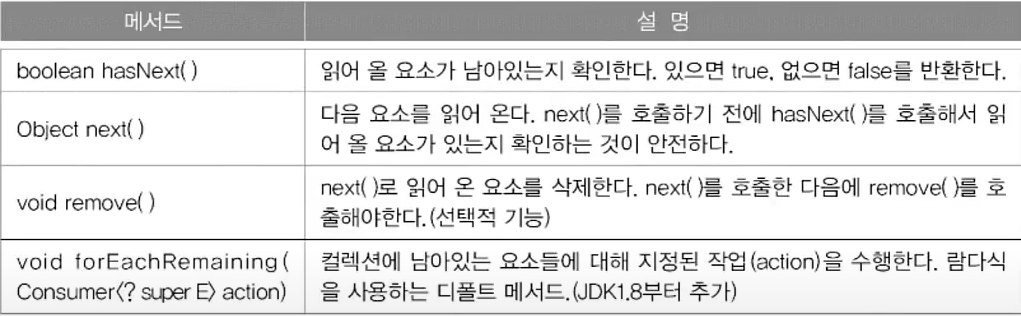 iterator는 List와 Set의 자료구조에 포함되어있는 메서드입니다.