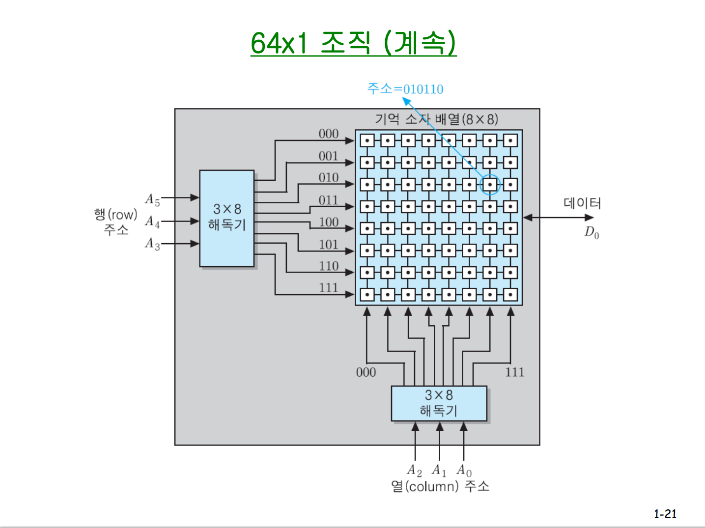 총 6개의 주소비트로 되어있으니 행의 주소로 3비트를 보내주고