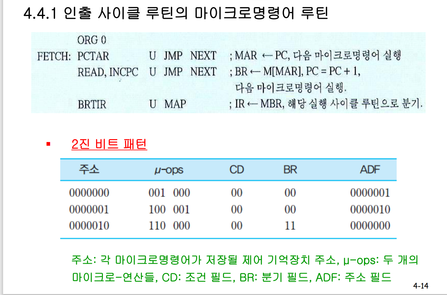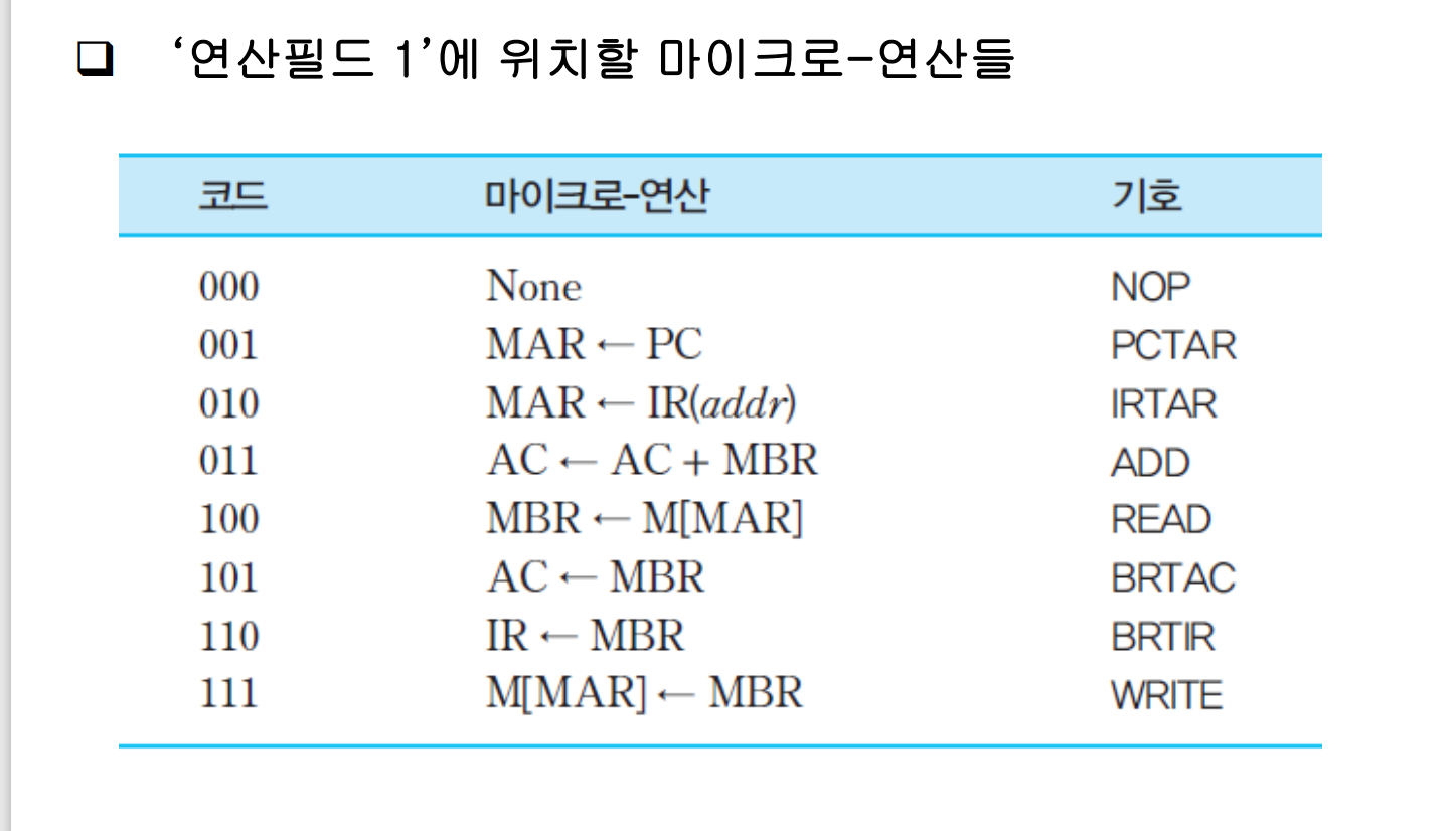 또한 하나의 마이크로연산을 위한 명령어를 마이크로 명령어 라고 한다.