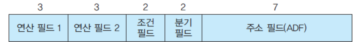 조건 필드 : 두 비트로 구성되며, 분기의 조건으로 사용