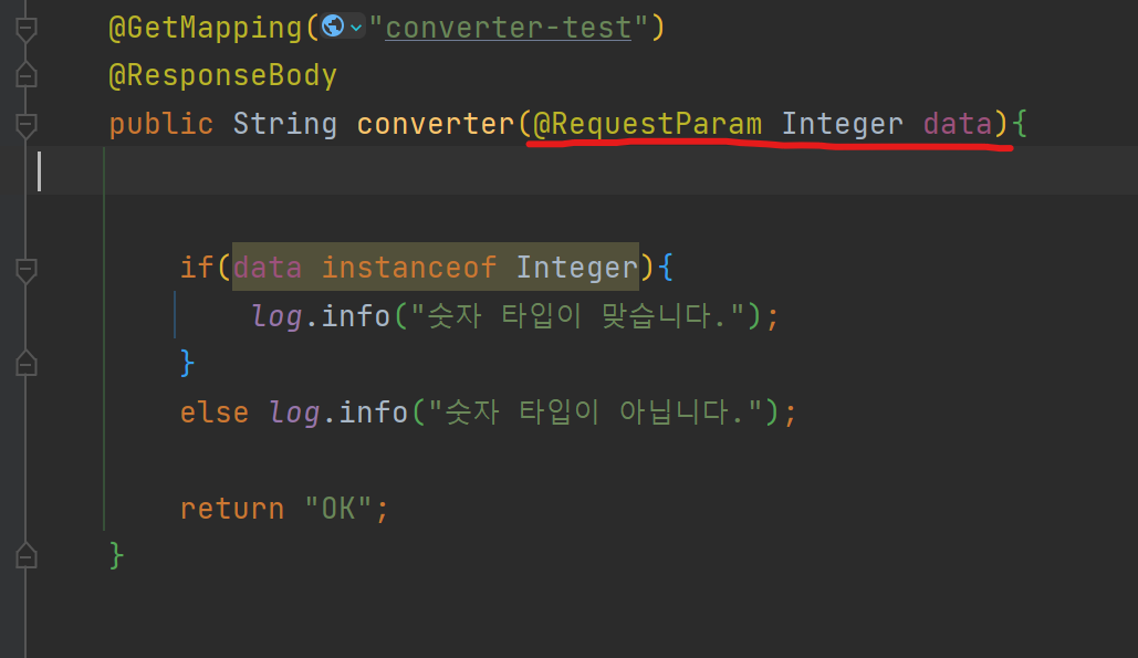 그 이유는 @RequestParam 옆에 붙은 타입이 정수타입이기 때문에 스프링이 자동으로 타입을 변환 해준다.